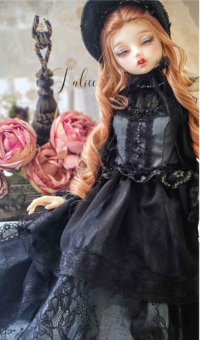 ■27cmサイズのお洋服です■ ※ボルドーウエスト、身頃のレース変更 黒裾レース変更になります リカちゃんキャッスルジェニーフレンドのデフォルトボディサイズに合わせて仕立てました。 見た目を重視に仕立てていますので 他のドールに入るか分かりかねます。 購入してからこのボディ以外のドールに入らなくても責任は負えませんので ご理解の上ご購入ください。 ソフトプリーツになります。 しっかりしつけをつけていません。 後ろ側は軽いプリーツになります。 お色はダークブルーでとボルドースカートは直にパニエがついています。 ■ 販売品 ・ワンピース本体(スナップ開閉) ドール本体、小物などは 商品に含まれません。 ハンドメイドのため、色々気になさる方はご購入をお控えくださいませ。 お使いのブラウザによって色が違うように見える場合があります。 ※特に濃い目のお色は明るさを調節しないように撮影しておりますが 実際のお色と若干、差がある場合がありますのご了承くださいませ。